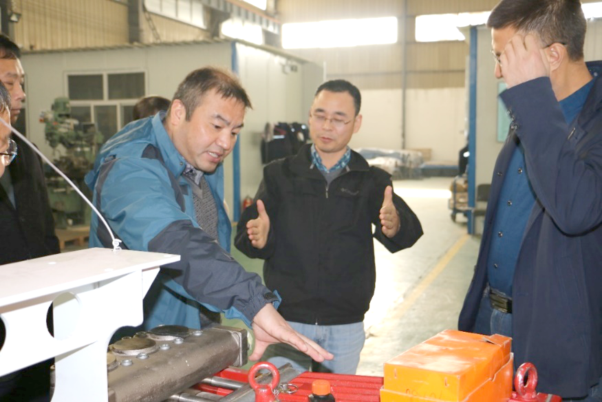 陕西省太合智能钻探有限公司董事长王义红对电竞比赛下注平台(中国)官方网站领导和专家的到来表示热烈欢迎。他首先详细介绍了企业的发展历程、科研成果以及发展愿景。他表示太合智能公司将不忘初心,砥砺前行。嗣后,专家们参观了目前国内扭矩最大的ZYL-17000D型矿用履带式全液压定向钻机、YSX15矿用有线随钻测量装置、YSX16矿用无线随钻测量系统、随钻测量钻具以及金刚石复合片钻头等系列高新产品,还就细节技术问题驻足讨论。