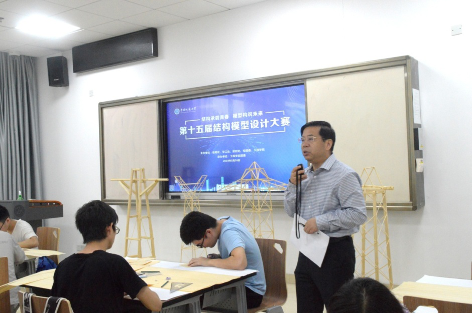 2019年5月26日,中国地质大学(武汉)第十五届结构模型设计大赛决赛于东区教学综合楼举行。大赛以“结构承载青春,模型构筑未来”为主题。分设结构类模型、美观类模型两个赛道,共有来自全校10个学院的54支团队参赛。