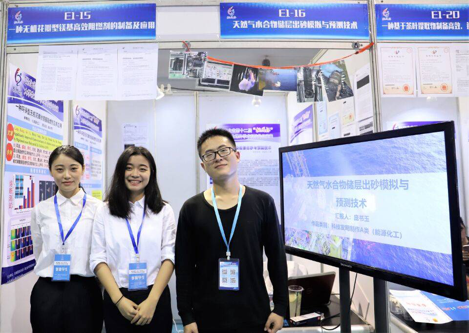 李晓东团队的作品《天然气水合物储层出砂模拟与预测技术》,指导老师是我院宁伏龙教授。该团队聚焦天然气水合物开采过程中的出砂问题,研发了一套水合物开采储层出砂综合实验模拟系统及图像处理系统,构建了一套实验尺度的连续—离散介质耦合出砂数值模型,构建了多场耦合出砂理论模型,形成了较为系统的基于实验和数据模拟的水合物储层出砂预测与评价技术体系。团队发表SCI论文3篇,获批国家发明专利2项、国家实用新型专利1项、计算机软件著作权5项。