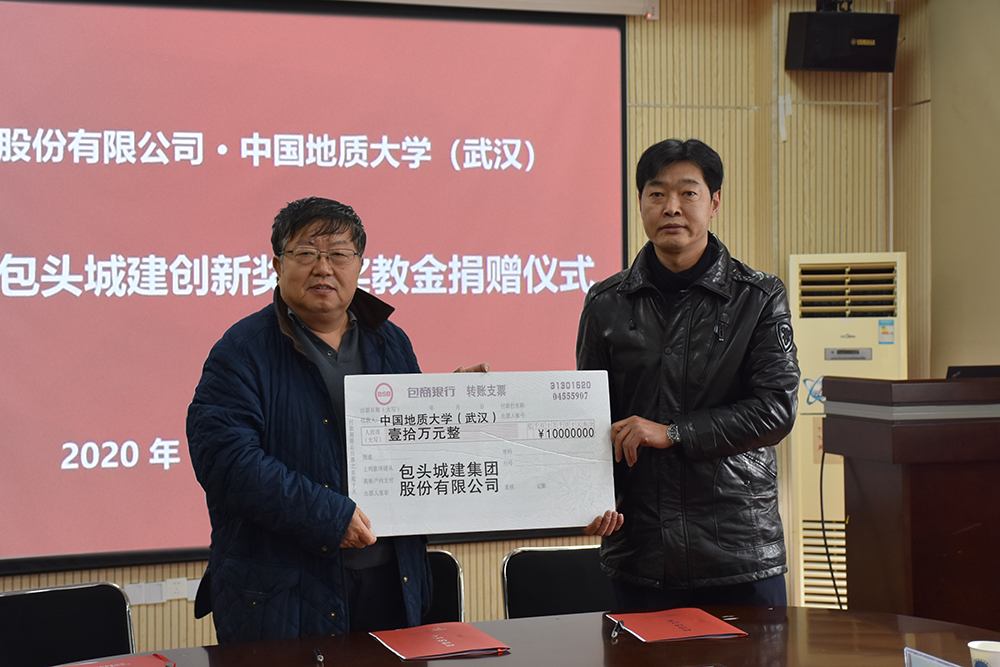 刘江、吕占峰、陈飞签署三方捐赠协议书。根据协议,包头城建集团再次捐赠10万元设立包头城建奖学奖教金。此前,该集团已捐赠30万元设立该奖学奖教金。吕占峰副处长接受捐赠支票;并向包头城建集团股份有限公司颁发捐赠证书。