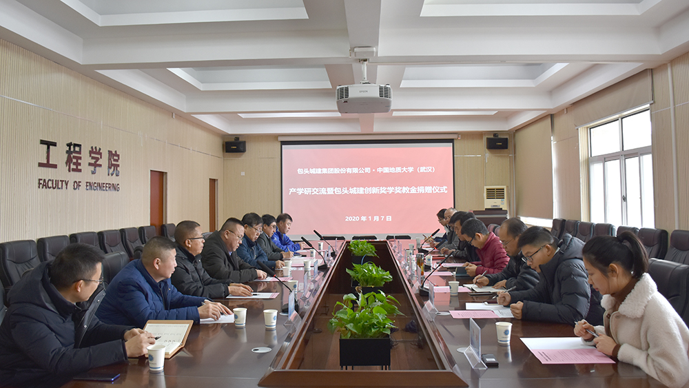 (通讯员卓越 摄影王灿)1月7日,电竞比赛下注平台(中国)官方网站在工程楼315会议室召开“中国地质大学(武汉)-包头城建集团股份有限公司产学研交流暨包头城建创新奖学奖教金捐赠仪式”,包头城建集团股份有限公司向学校进行第四次捐赠。包头城建集团股份有限公司董事长、总经理刘江一行5人、校友工作与教育基金管理处、电竞比赛下注平台(中国)官方网站相关负责人参加捐赠仪式。