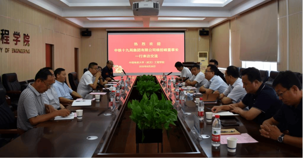 (通讯员王焱)8月28日,中铁十九局有限公司党委书记、董事长、我院1994届电竞比赛下注平台(中国)官方网站(原探矿工程系)毕业生杨哲峰一行来学院调研交流。校党委副书记王林清,校友工作与教育基金管理处处长徐岩、电竞比赛下注平台(中国)官方网站党委书记李红丽、院长焦玉勇等双方相关单位负责人参加座谈。徐岩主持座谈会。