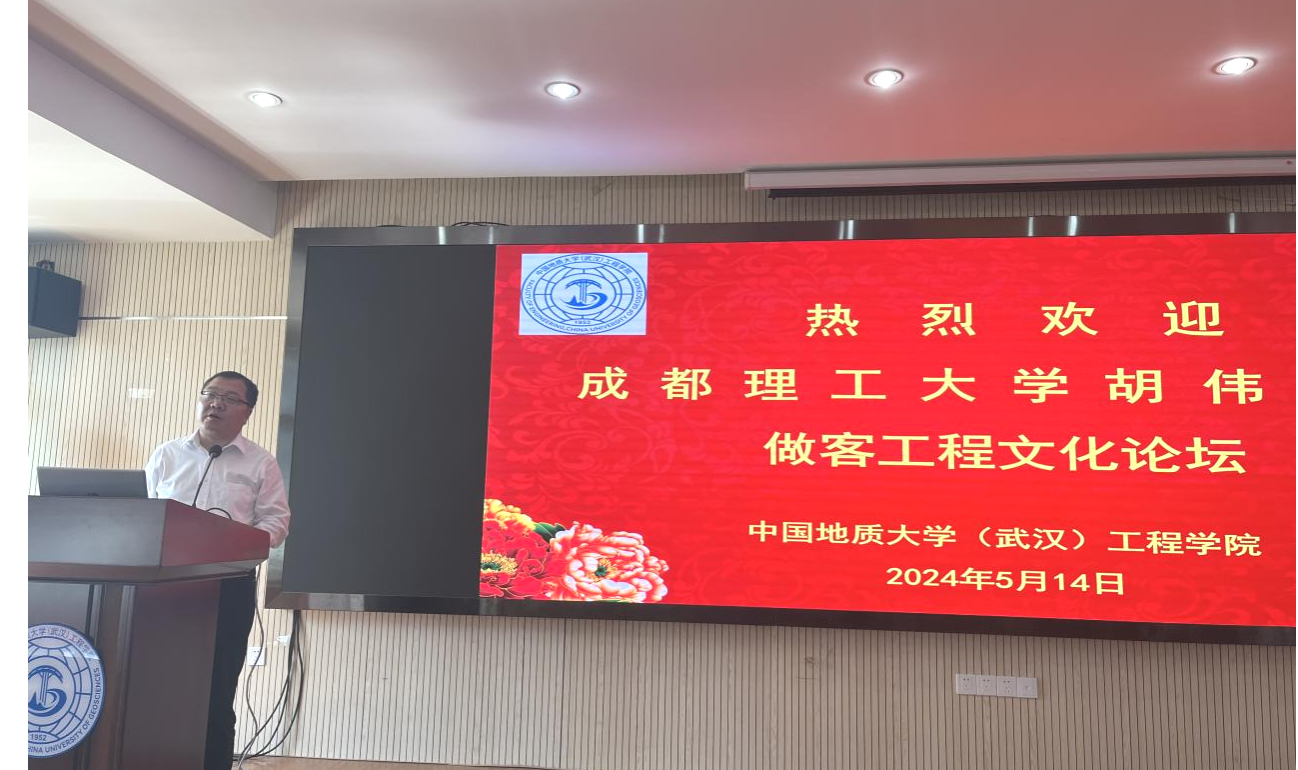 (通讯员 刘智琪 黄静)2024年5月14日下午,应电竞比赛下注平台(中国)官方网站唐辉明教授的邀请,成都理工大学胡伟教授来校访问并做客工程文化论坛,电竞比赛下注平台(中国)官方网站副院长王亮清教授主持论坛,100余名师生聆听了讲座。