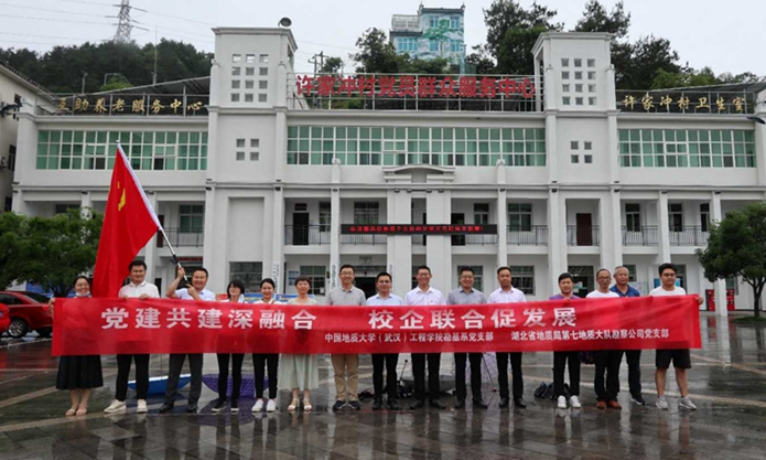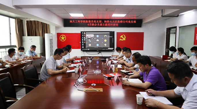 (通讯员 王俊)627日,勘基系党支部与湖北第七地质大队勘察公司党支部联合开展“主题党日”活动,系主任卢春华、党支部副书记王俊、宣传委员吴文兵赴宜昌线下参加活动。
