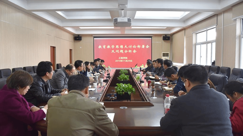 电竞比赛下注平台(中国)官方网站于2018年11月29日下午14:00在工程楼315会议室,召开了“电竞比赛下注平台(中国)官方网站教育教学思想大讨论部署会及问题分析会”。参加会议的有学院党政领导和各系主任、支部书记及学科带头人。会议由党委书记陈飞主持,此次会议目的是提高认识,统一思想,落实行动。