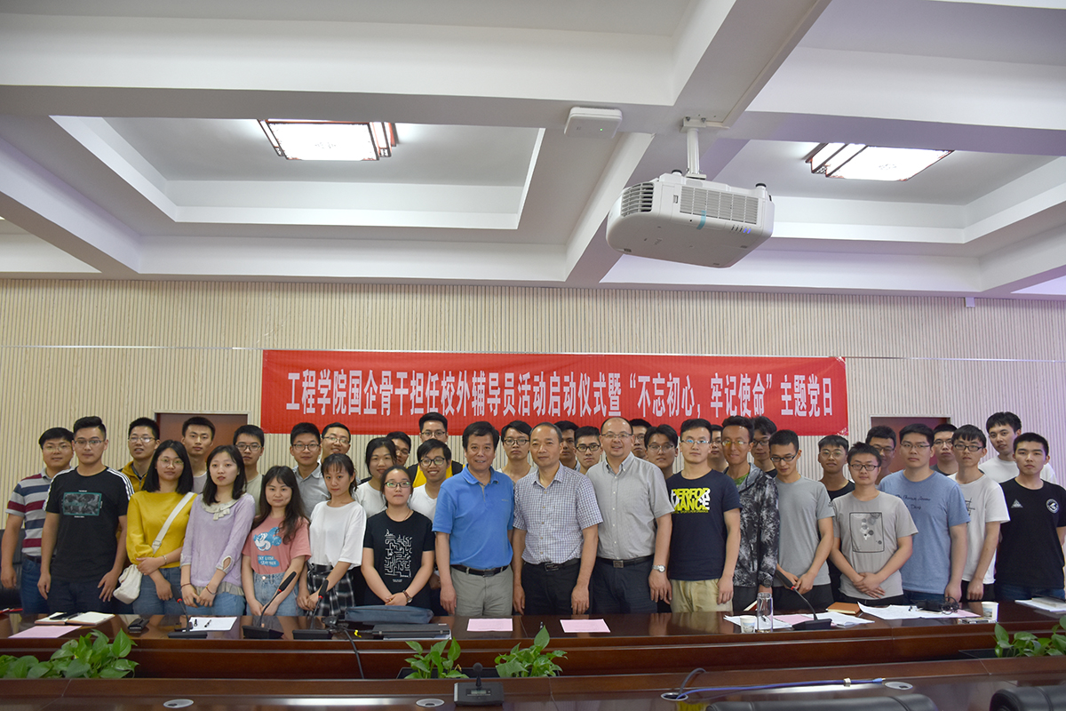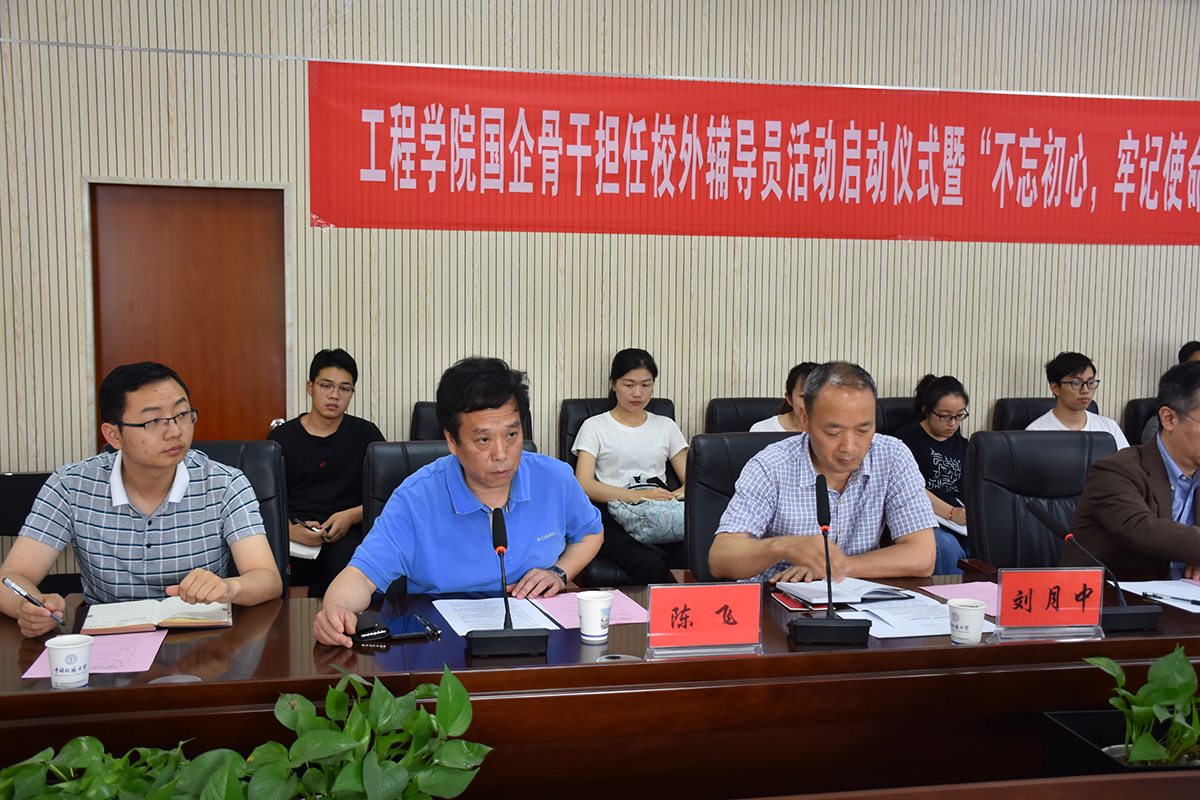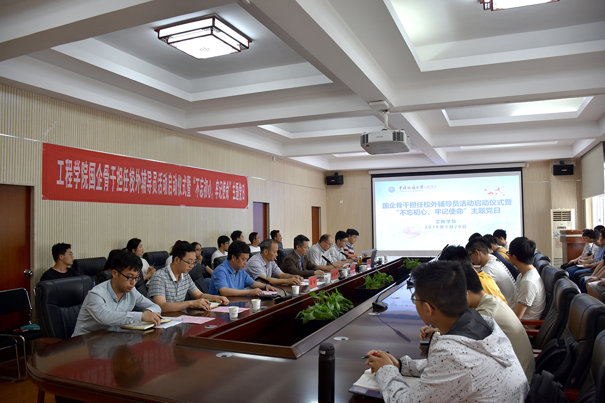 5月20日下午,电竞比赛下注平台(中国)官方网站国企骨干担任校外辅导员启动仪式暨“不忘初心,牢记使命”我与国企面对面主题党日在工程楼315报告厅成功举行。电竞比赛下注平台(中国)官方网站校外辅导员、中国黄金集团湖北三鑫金铜股份有限公司提升车间主任、党支部书记刘月中,学校学工处副处长苏洪涛,电竞比赛下注平台(中国)官方网站党委书记陈飞、副书记江广长、全体辅导员及四个学生党支部共40余人参加活动。