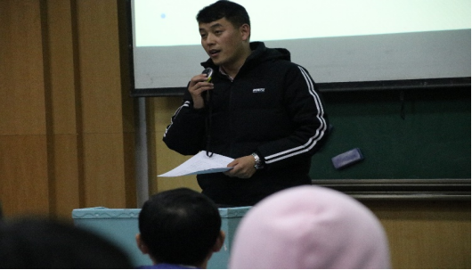 首先,谢辉老师讲解学校组织期末考试的政策与安排,强调全体学生要尽快投入全面系统的复习、做好充分准备迎接期末考试,要以良好自信的心态迎接期末考试,要了解考试中突发事件的处理规定和流程,要严肃考风考纪、不得出现夹带或用通讯工具作弊等违规违纪行为。