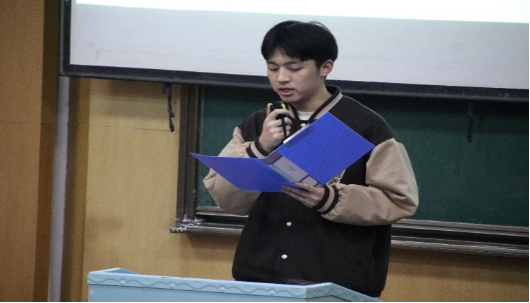 (图为学生会主席李新纪元发言)