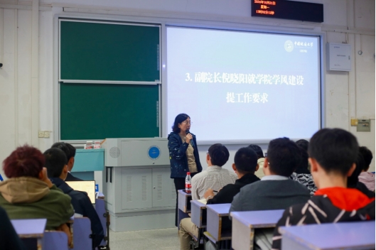 (通讯员 彭友元 赵汪钖)为了深入贯彻落实学校“严在地大、卓越引领”质保理念和电竞比赛下注平台(中国)官方网站“三观三型”人才培养目标,着力构建优良学风建设长效机制,10月21日中午,电竞比赛下注平台(中国)官方网站在教三楼207举行“优良学风示范班”创建启动仪式暨学风建设大会。学院党委书记李红丽,副院长倪晓阳,党委副书记高晓东,全体专兼职辅导员,本科一、二、三年级班长、团支书、学习委员和各班级学生代表参加会议。高晓东主持会议。